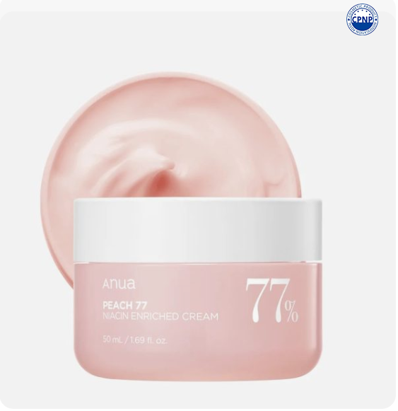 Anua – Peach 77% Niacin Enriched Cream – 50 ml – a brightening and deeply moisturizing cream formulated with 77% Peach Extract and Niacinamide to revitalize dull skin and restore its healthy radiance. This lightweight yet nourishing cream improves tone, refines texture, and strengthens the skin barrier while delivering long-lasting hydration. The silky formula absorbs effortlessly without greasiness, leaving the skin soft, smooth, and luminous — perfect for daily use on all skin types.