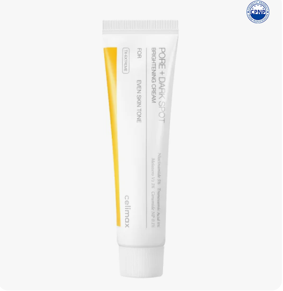 Celimax – Pore + Dark Spot Brightening Cream – 35 ml – a multi-action brightening cream designed to refine pores, even skin tone and hydrate deeply without heaviness. Infused with high-performance actives and barrier-care ingredients, it’s ideal for skin concerned with uneven tone, dark spots or texture.